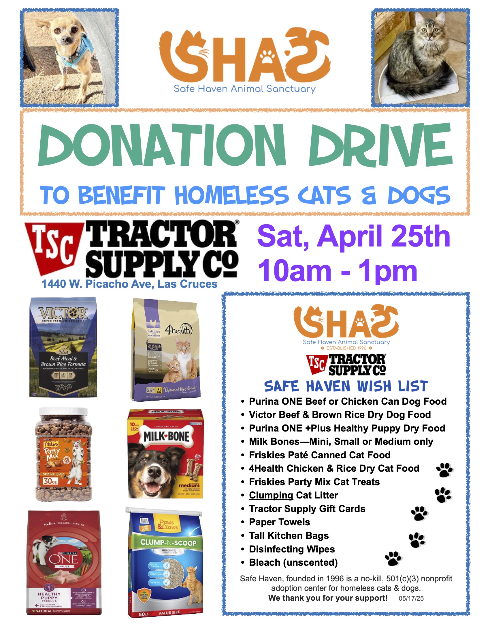 As a non-profit organization we do not receive any local, state or federal government funding. We earn or raise 100% of our annual operating budget. Donations are tax-deductible to the extent allowable by law. Thank you for supporting the work we do on behalf of the homeless cats and dogs of our community!
